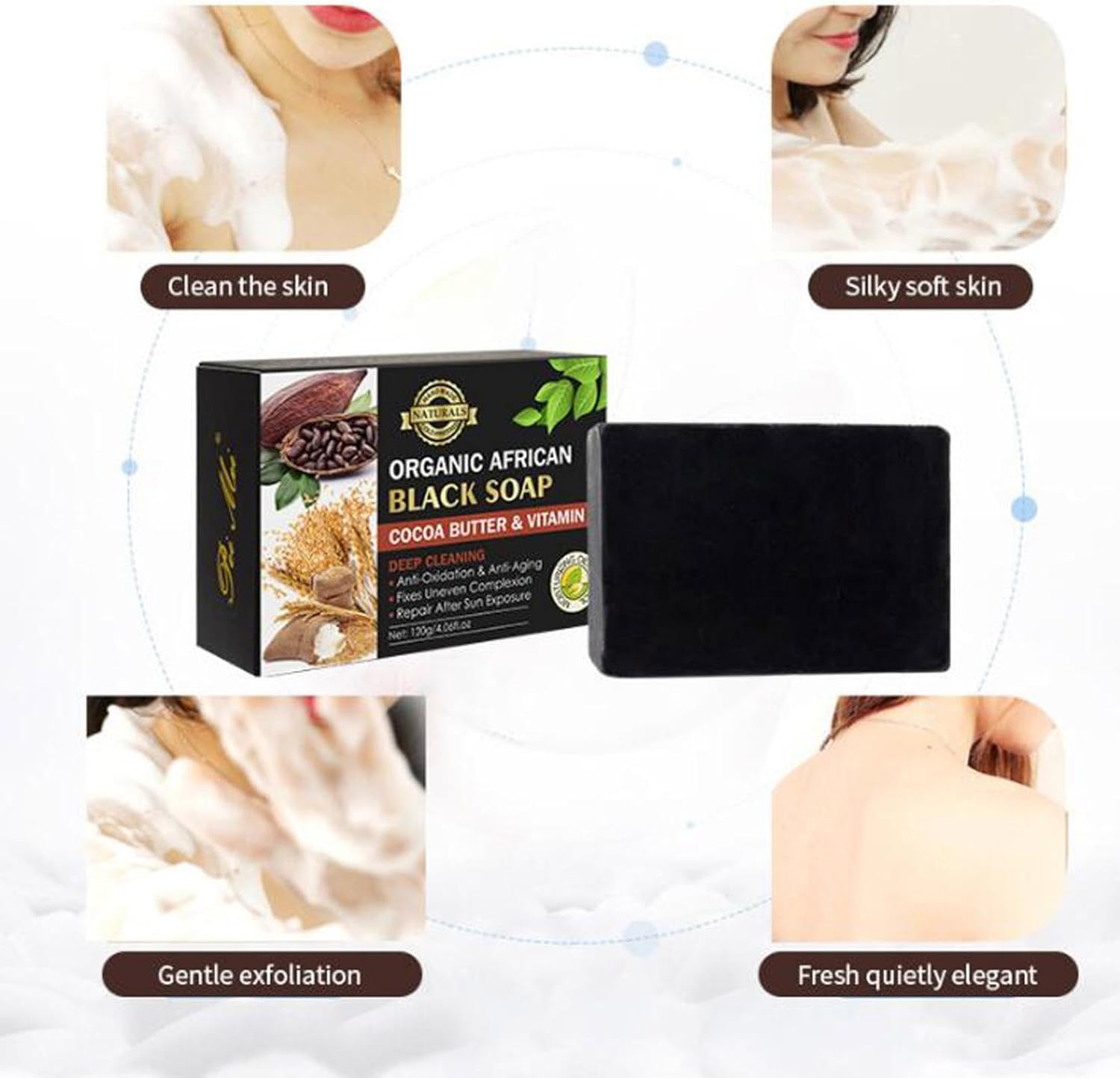 Detoxifying and Anti-Ageing: Due to its gentle peeling properties, vitamins and minerals. The regular use of black soap helps to remove facial folds that are usually early signs of skin aging, and prevents premature wrinkle formation and bedding.